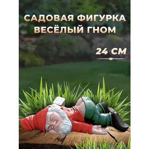 Фигурка садовая "Веселые Гномы", ABS-пластик, 24см, для газона, красная