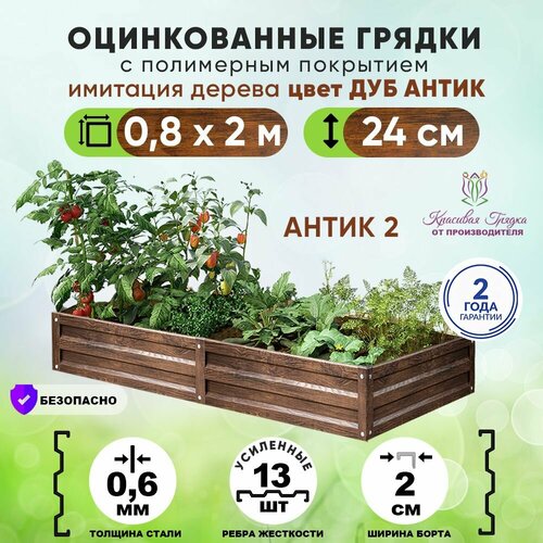 Грядки оцинкованные на дачу усиленные 2х0,8 метра АНТИК2 / ограждения металлические для цветов ягод зелени и овощных культур / грядка для сада и огорода высота борта 24 см