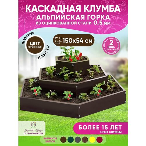 Клумба садовая оцинкованная для цветов и растений "Красивая грядка", усиленная, коричневая