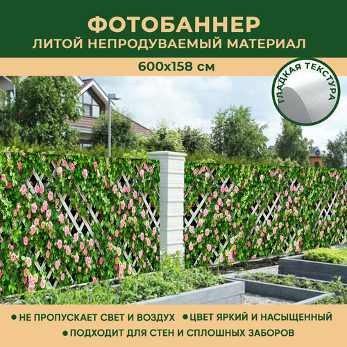 Фотобаннер Мечта для стен и сплошных заборов 600x158 см, "Розовые розы" / Фотофасад