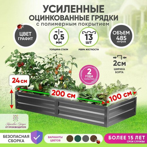 Грядки оцинкованные на дачу с полимерным покрытием усиленные 2х1 метр / ограждения металлические для растений в теплицу и открытый грунт / грядка для сада и огорода высота борта 24 см