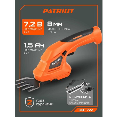 Ножницы-кусторез аккумуляторный PATRIOT CSH 272, 1.3 А·ч, 7.2 В, с АКБ , orange