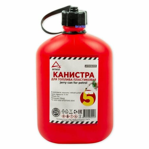 Канистра 5л для топлива пластиковая, с мерной шкалой и лейкой / красная ARNEZI A1006005