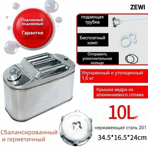 Канистра для топлива, 10л, нержавеющая сталь 304, бензин, дизель, запасной бак, переносной, усиленный, для авто