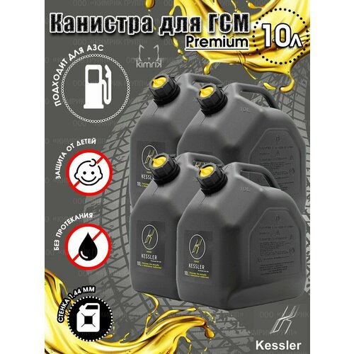 Канистра ГСМ Black черная с желтой крышкой, 10 л х 4 шт, Kessler