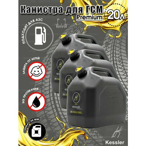 Канистра ГСМ Black черная с желтой крышкой, 20 л х 3 шт, Kessler