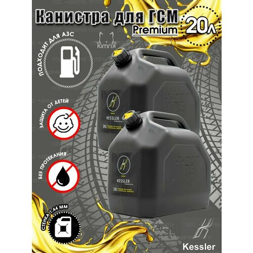 Канистра ГСМ Premium, желтая, 20 л х 2 шт, Kessler