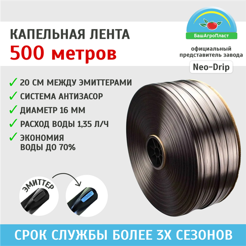 Лента для капельного полива 500 метров с шагом эмиттеров 20 см Neo-drip