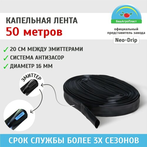 Эмиттерная капельная лента NEO-DRIP для капельного полива шаг 30 см (диаметр 16 мм), 50 м