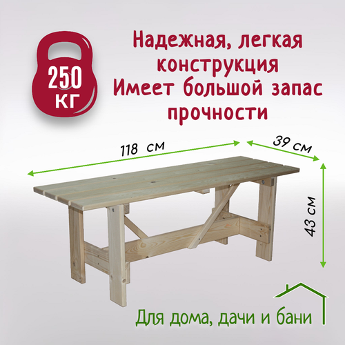 Лавка садовая, массив дерева, скамейка садовая, для бани, 118х39х43 см, Банный Мастер