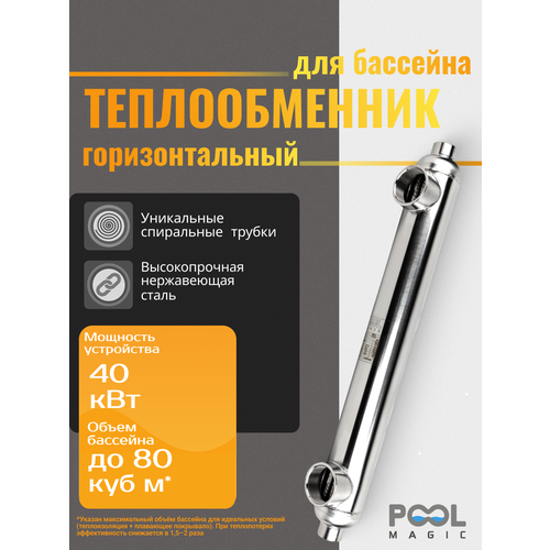 Теплообменник Poolmagic 40ST-S, нержавеющая сталь AISI-304, 40кВт
