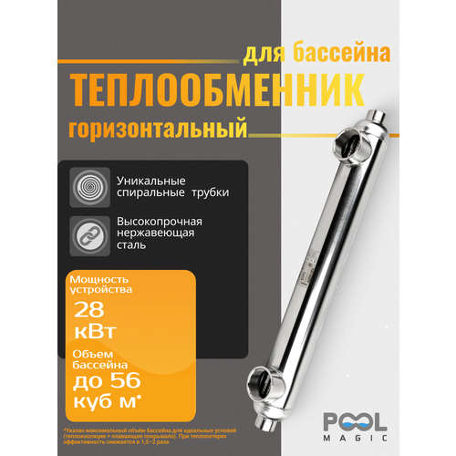 Теплообменник для подогрева воды бассейна Poolmagic ST 28S-S, 28 кВт, нержавеющая сталь, горизонтальный