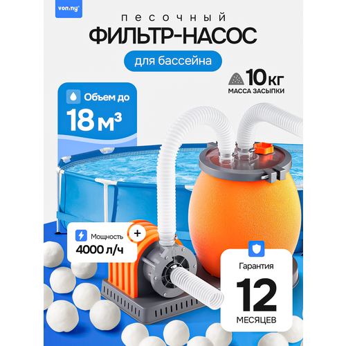 Песочный фильтр (песчаный фильтр-насос) с наполнителем для бассейнов до 16 куб. м, мощность 4 куб. м/ч