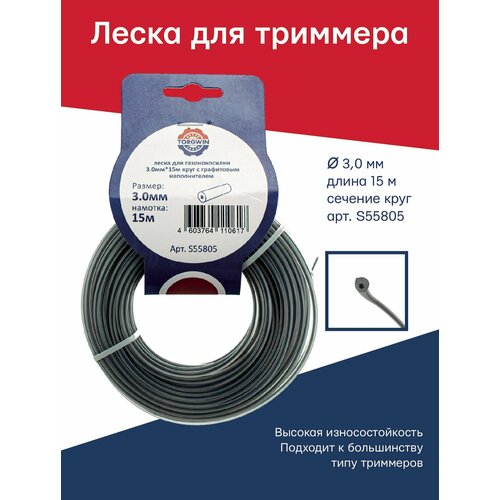 Леска для триммера серебро 3.0 мм х 15 м круг с графитовым наполнителем TORGWIN TGS S55805