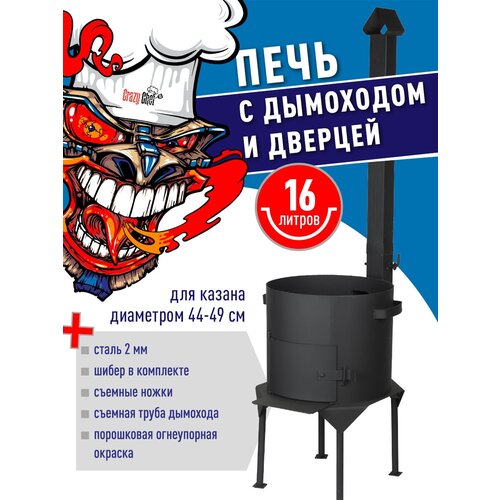 Печь для казана 22 л, диаметр 45 см, сталь 2 мм, с трубой и дверцей, съемные ножки