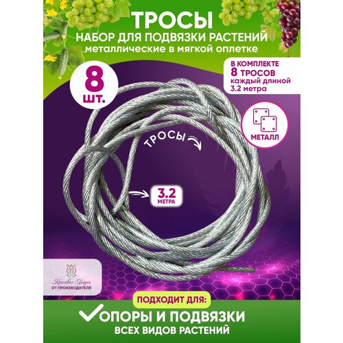 Подвязка для растений для теплиц металлическая 3,1 м / трос садовый для шпалер / 1 набор струн