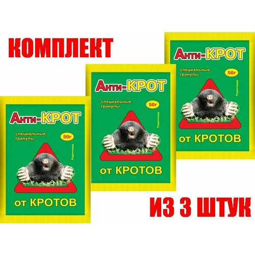 Комплект из 3 штук средство для уничтожения кротов анти-крот Ваше хозяйство 50г