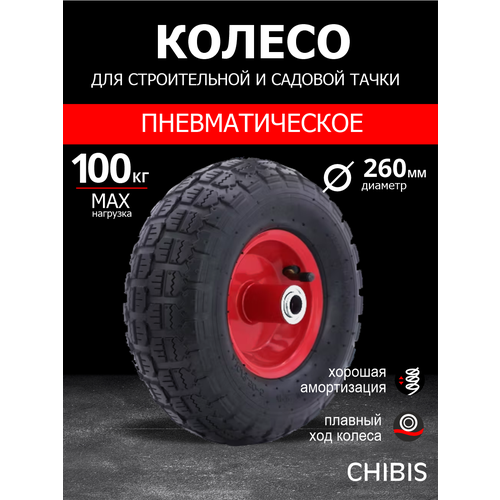 Колесо для тачки/тележки Пневматическое 4.00-8 PR3001-16 (d колеса 395 мм, d ступицы 16 мм, L ступицы 100 мм), красное