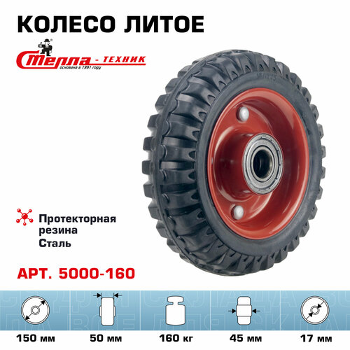 Колесо литое с протекторной резиной Стелла-техник 5000-160 диаметр 150мм, грузоподъемность 160кг, шариковый подшипник под ось 17мм