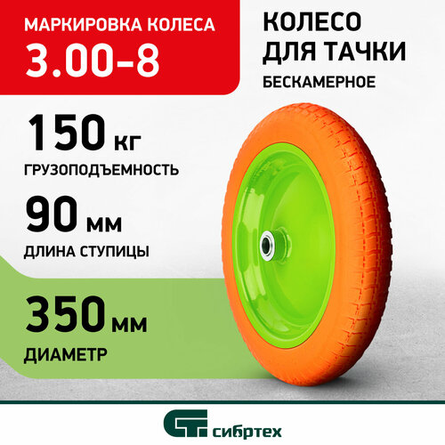 Колесо полиуретановое Сибртех 3.00-8 длина оси 90мм, подшипник 20мм 689765