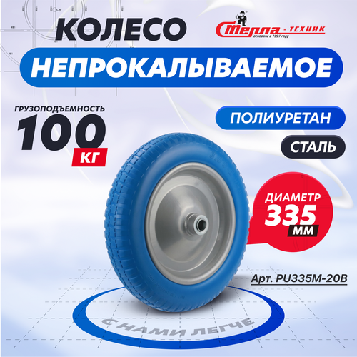 Колесо полиуретановое для тачки садовой Стелла-техник PU335M-20B под ось 20мм, грузоподъемность 100кг