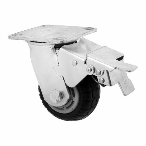 Тундра Колесо для транспортных тележек поворотное, d=100, на площадке, со стопором , покрытие резина 9917