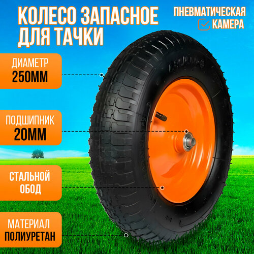 Колесо запасное для тачки W10-250/4(20), Диаметр колеса 250 мм, пневматическое с камерой