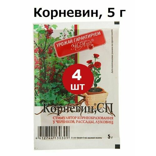 Корневин (мосагро) 5 г Стимулятор корнеобразования у черенков, рассады и луковиц, удобрение для сада и огорода (4 шт)