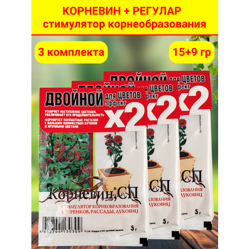 Комплект для цветов. Корневин Стимулятор образования и роста корней, 5 г и Регулар, 3 г, 3 комплекта