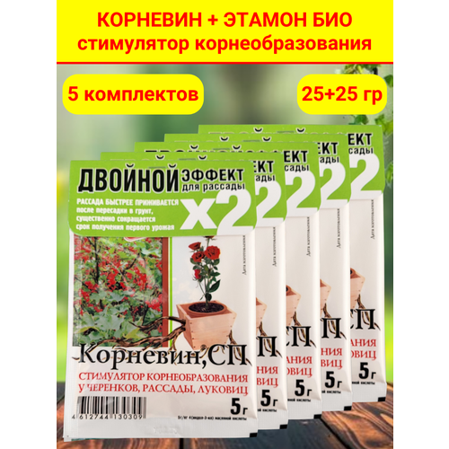Комплект для рассады: 5 упаковок, в каждой корневин, стимулятор образования и роста корней (5 г) и Этамон био (5 г)