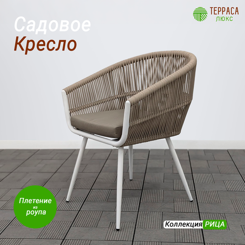 Садовое кресло Рица, искусственный ротанг, металлический каркас, бежево-белое, максимальная нагрузка 120кг