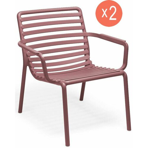 Комплект из 2-х садовых обеденных кресел для дачи Nardi Doga Relax, из стеклопластика, цвет марсала