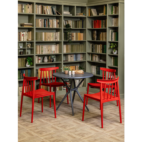Комплект садовой мебели: серый стол TOM + 4 красных стула KAI