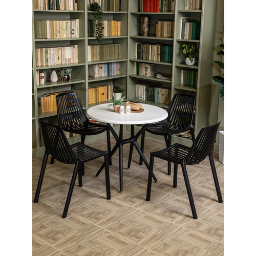 Комплект садовой мебели: черно-белый стол Royal Family TOM + 4 черных стула NICO