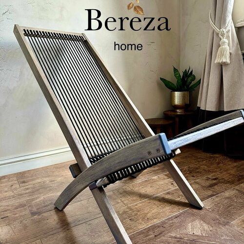 Садовое кресло шезлонг деревянный для дома и дачи складной, цвет серый сканди