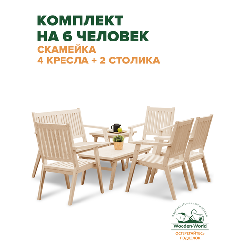 Комплект садовой мебели из массива дерева (столик, столик журнальный, скамейка, 4 стула) на 6 человек