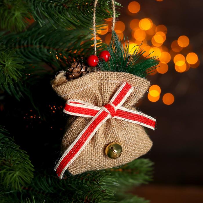 Подвеска новогодняя на ёлку "Мешочек с подарками" 8х9 см 100045690238