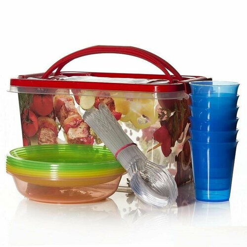 Набор посуды для пикника №32, Альт-Пласт, 38 предметов на 5 персон, пластик