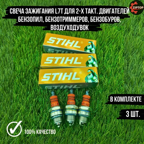 Свеча зажигания L7T для 2-х такт. двигателей бензопил, бензотриммеров, бензобуров, воздуходувок и пр. (3 шт.)