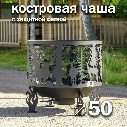 Костровая чаша Олени с защитной сеткой, диаметр 50 см / Чаша для костра FIRE-HOUSE