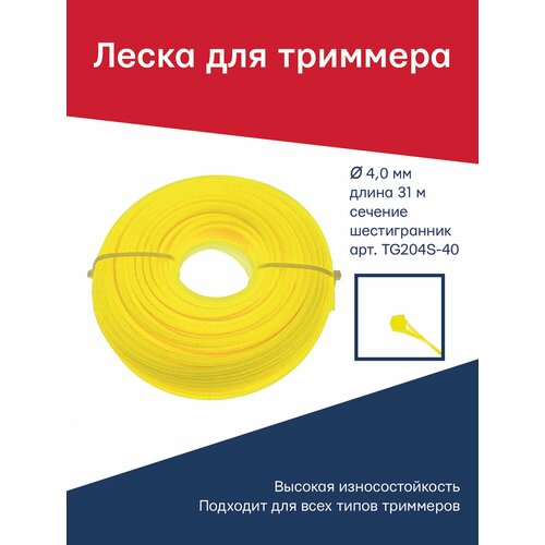Леска для триммера желтая 4.0 мм x 31 м 450гр шестигранник TORGWIN TG204S-40