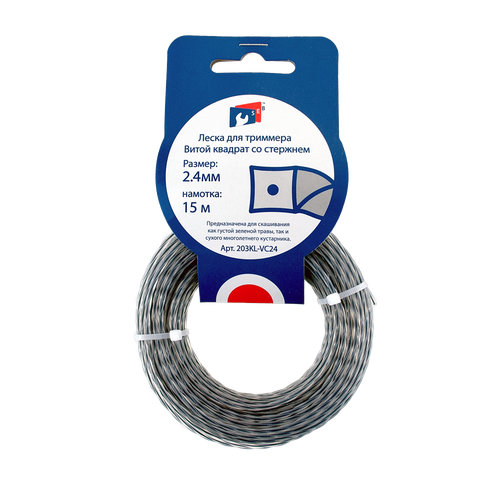 Леска для триммера серебро 2.4 мм х 15 м квадрат с графитовым наполнителем TORGWIN TGS S65399