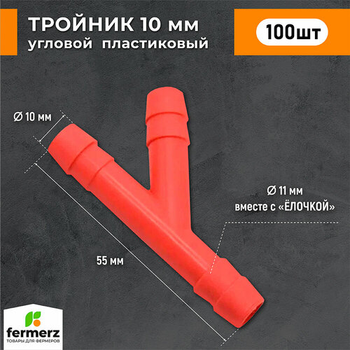 Тройник для шланга, 10мм пластиковый Y образный 100 шт красный. Фитинг переходник 10 мм для трубки для шланга