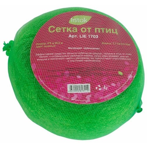 Сетка от птиц LISTOK 1,7х1,7 (4м* 5м) зеленая