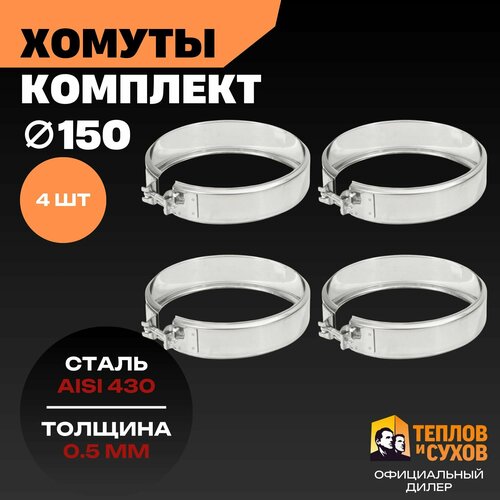 Комплект хомут трубный обжимной 150 для дымохода на болте 4 шт, нержавейка AISI 430, Теплов и Сухов