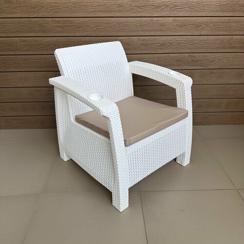 Кресло под Ротанг Белый, с бежевой подушкой