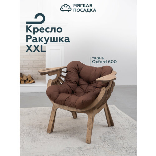 Садовое кресло "ракушка XXL" для отдыха на даче, цвет светлый дуб + коричневая подушка