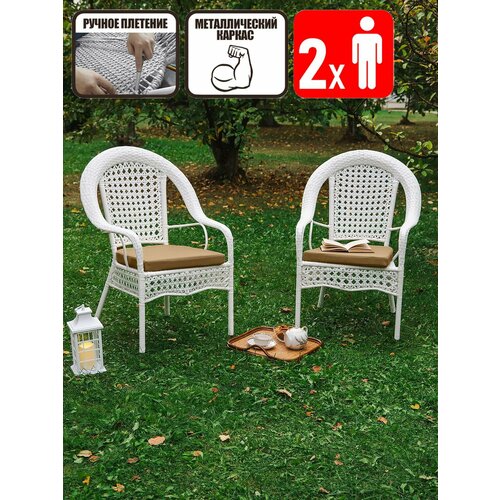 Садовые кресла из искусственного ротанга Шампань, белый. Комплект из 2-х кресел