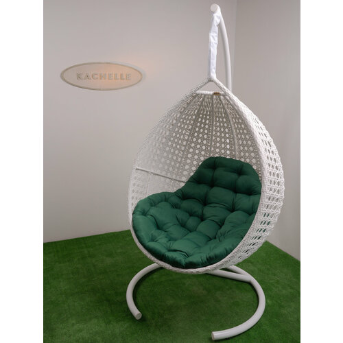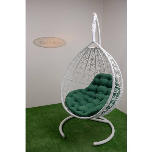 Кресло подвесное Bigarden "Tropica", белое, со стойкой, зеленая подушка (чехол в подарок)