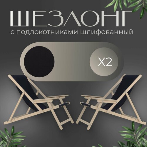 Кресло-шезлонг "Элби" с подлокотниками шлифованный с черной тканью для дома и для дачи, комплект 2 шт